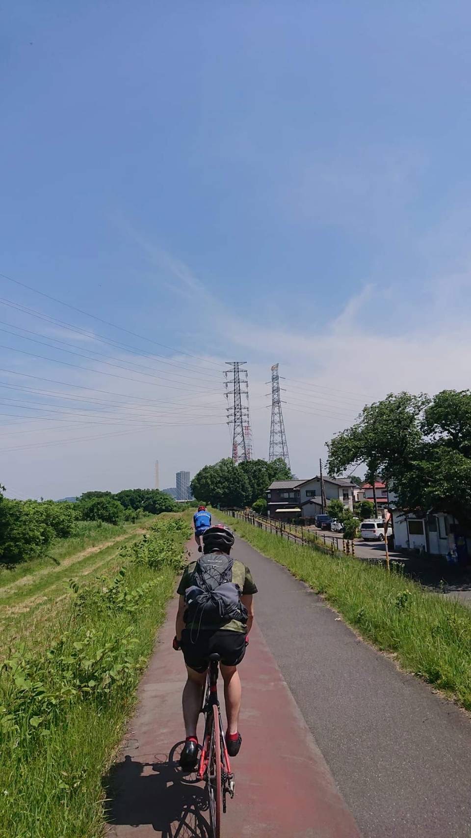 サイクリング道路は夏に向けて、木や草がお生い茂り、