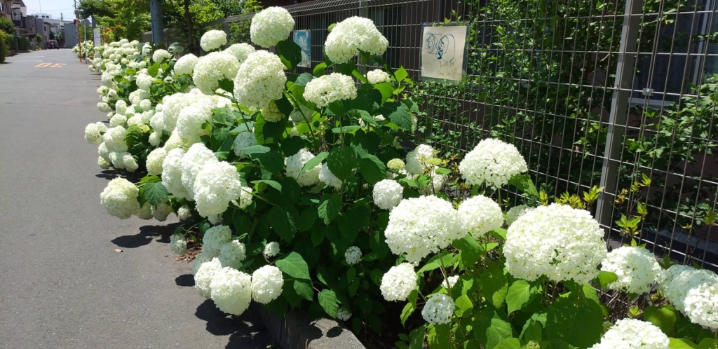 地元の裏道100メートルくらい続く「真っ白のみ」紫陽花