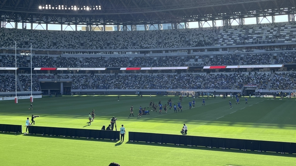 先日、国内リーグ(リーグワン)の決勝戦が行われ、父母(父が往年のラグビーファン)を誘って、国立競技場に4人で観戦に行ってきました。