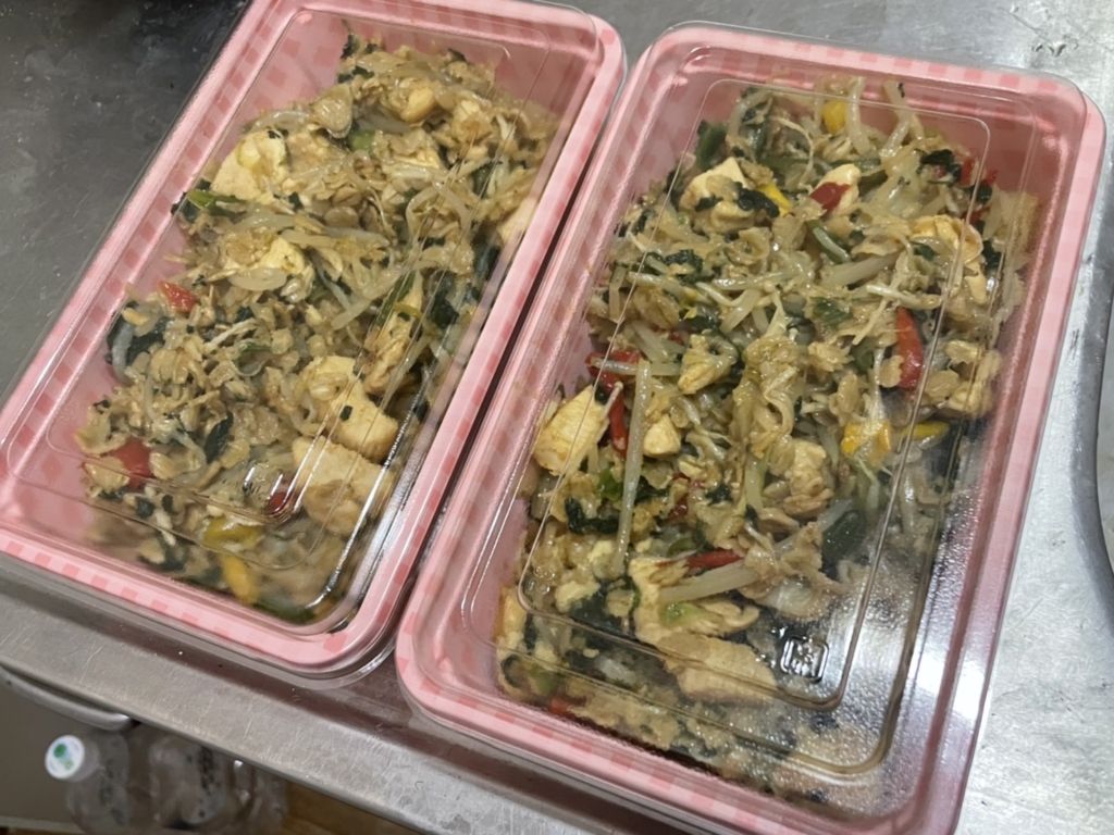 ということで、ゴールデンウィークは少しでもピクニック気分を味わおうと思い、今回は無愛想なタッパを使わず、少しかわいげな使い捨て容器を100均で買い、そこにいつものオートミール減量飯を準備して出かけました。笑