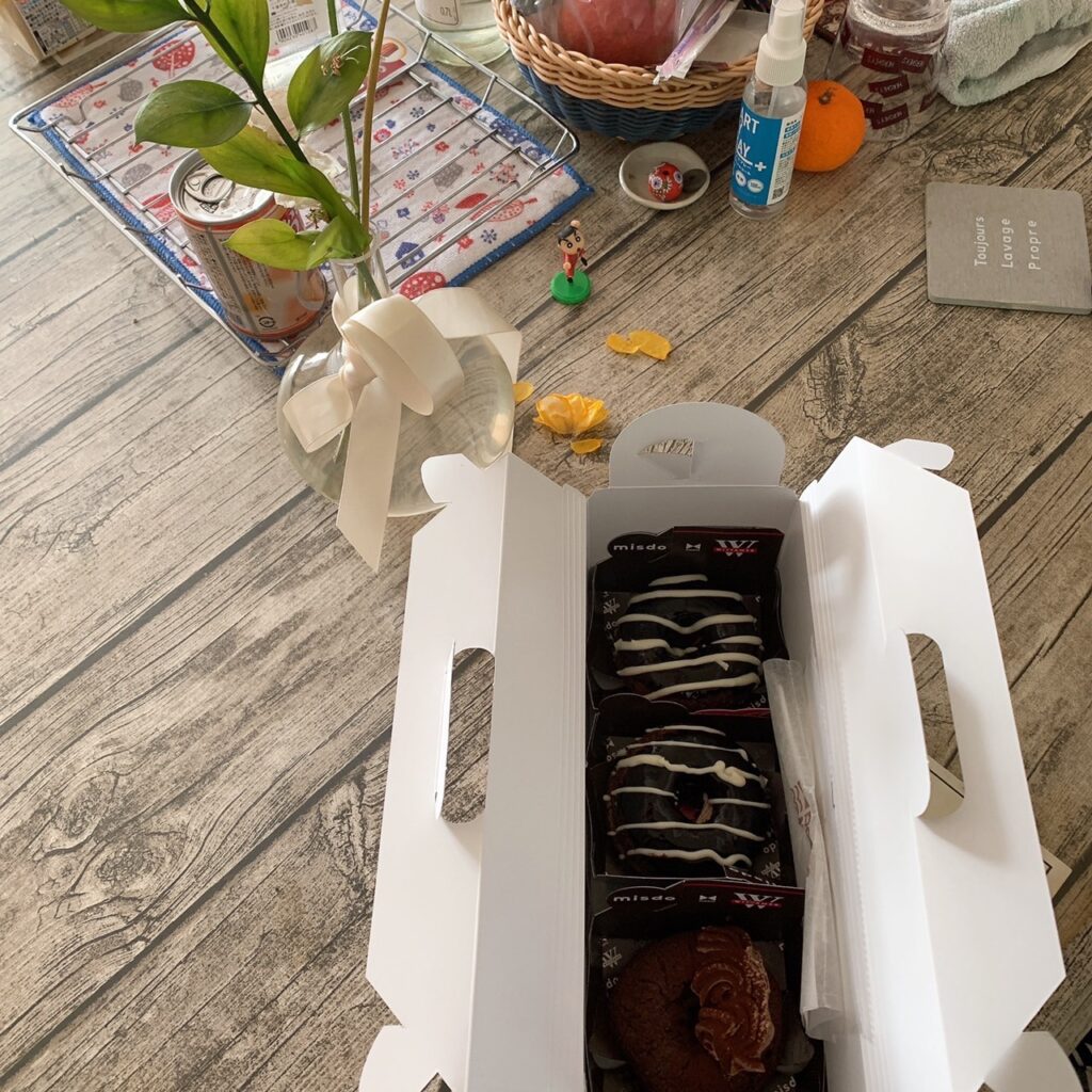 まずはミスタードーナツとヴィタメールコラボのめちゃくちゃ美味しいチョコレートドーナツです。次女私と同じくチョコレート大好きでどこからか情報仕入れてきて買ってきてくれました(ˊᵕˋ)੭ アルバイトはさせてみるものですね( ‘ω’)