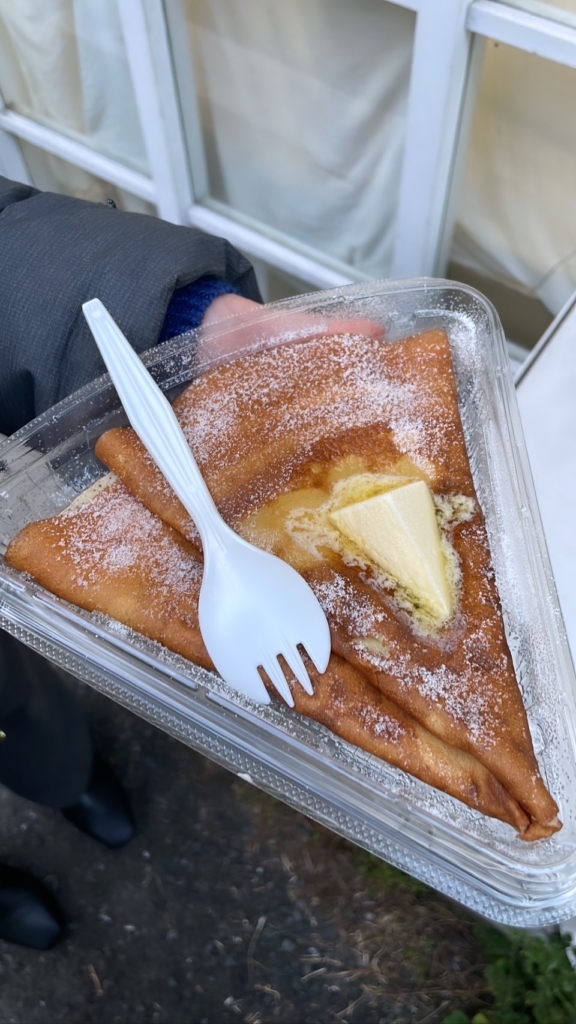 その場で温め直してくれ、熱々もちもちのクレープの上を滑らせるようにバターを染み込ませ、それはそれは美味しくいただきました。。