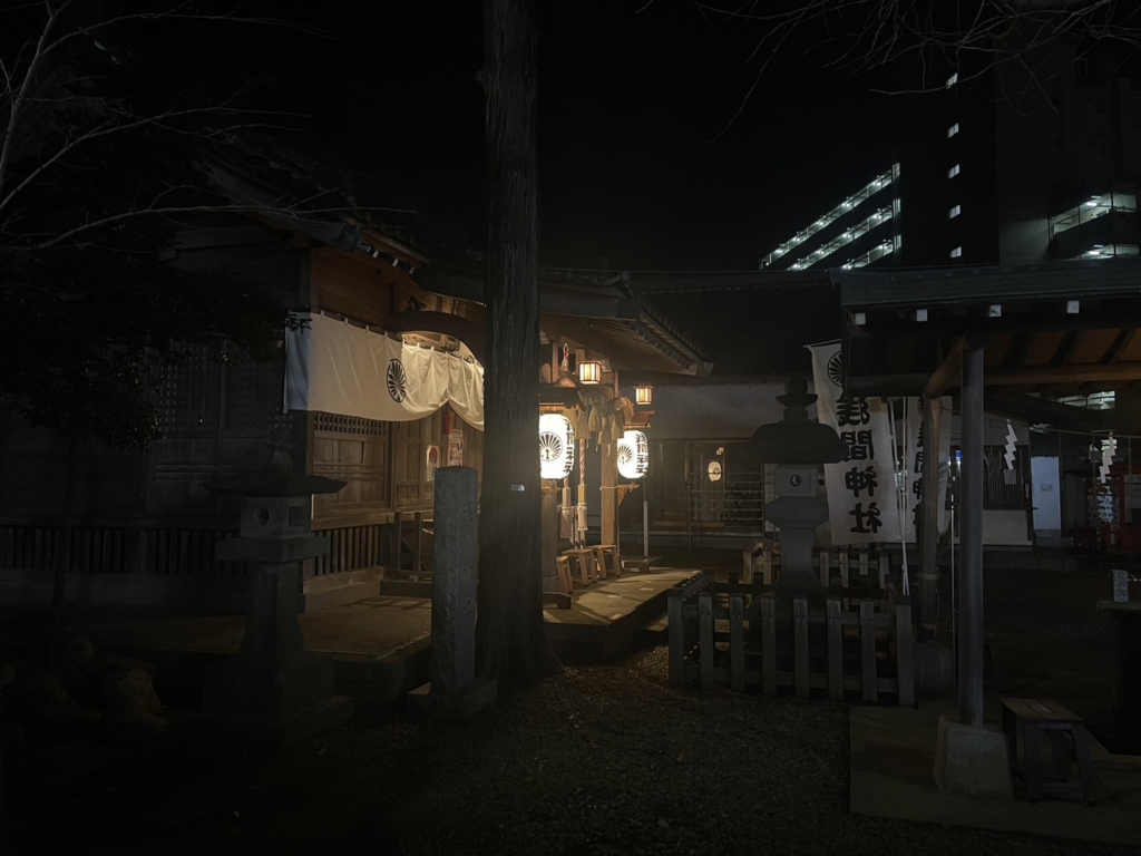 陽が落ちると社に灯りが灯る雰囲気がなんとも厳かに感じられます。