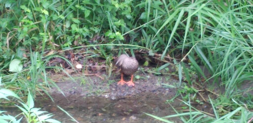 カワセミや鴨がいて、私が行った時はちょうどカルガモが水辺にいました。