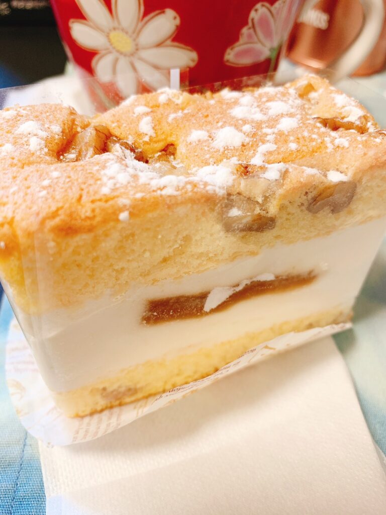 生クリームがさっぱりしていて甘さ控えめ、その代わりキャラメルが濃厚で最高。クルミの混ぜこまれた少し固めの生地とクリームの柔らかさにスイーツ職人的センスが光ります。一言で表すと最高☆°。⋆⸜(* ॑꒳ ॑* )⸝