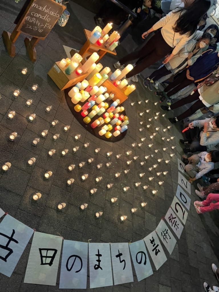 キャンドルのまえには多くの人がゆらめく光に癒されていました。