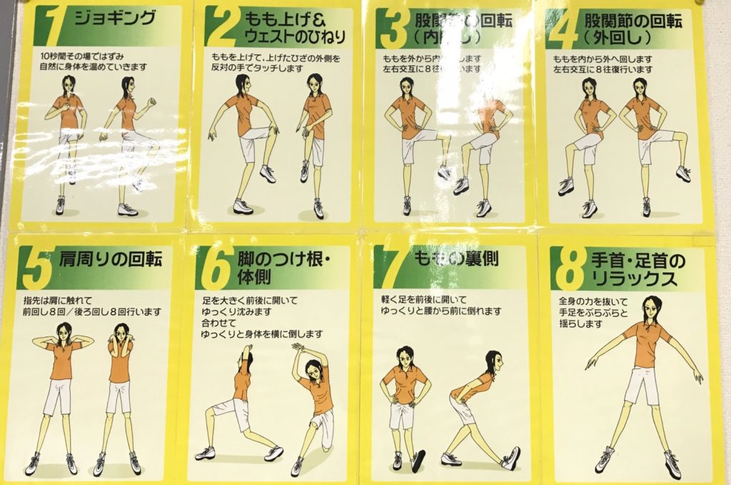 LOLでは準備体操のイラストが入口の右上に貼ってあります。