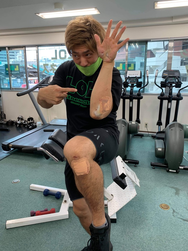 てのひら、ヒザ、ヒジの肉を時速40kmのスピードで擦ってしまって合計5カ所にクレーターができてしまいました。転んでしまったことや過信していたことも悔しいですが、何よりもアスファルトに負けるほどの身体の弱さが悔しいと思いました。皮膚のトレーニングも必要ですね。