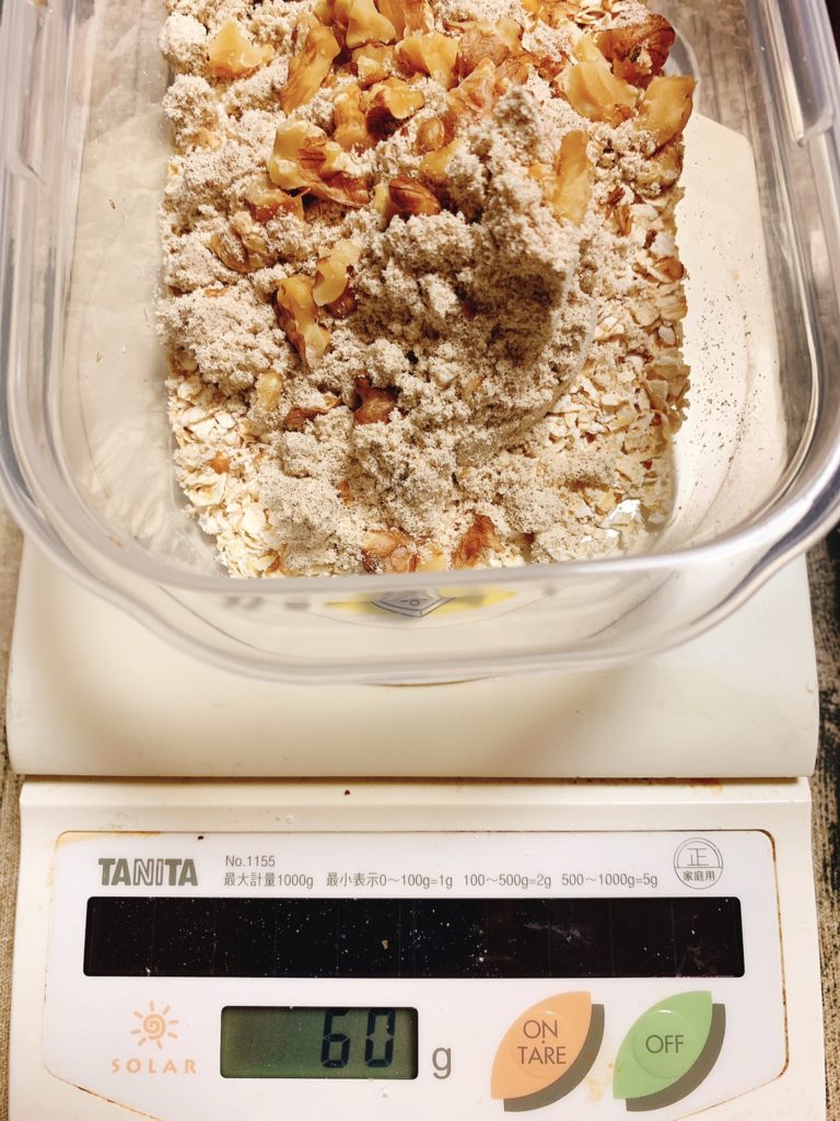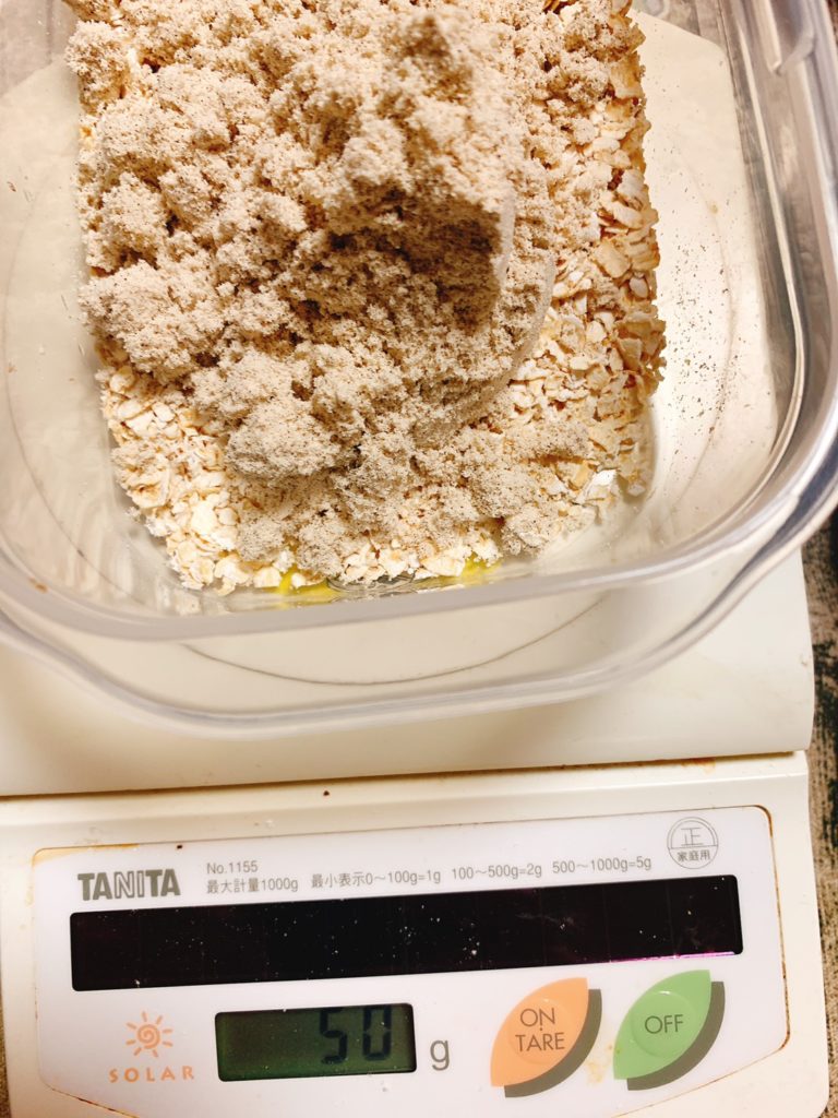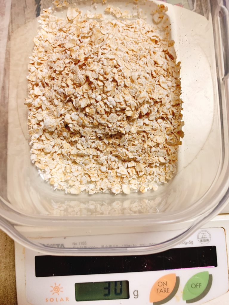 ひとつ重要なことは、オートミールは『インスタントオートミール』が良いです。こちらは加熱処理がしてあるので水分の含みがよく滑らかな食感に出来上がります。