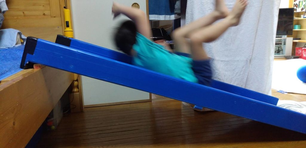 *ベッドからの滑り台→ドイトの木材、滑りそうな素材のクロス