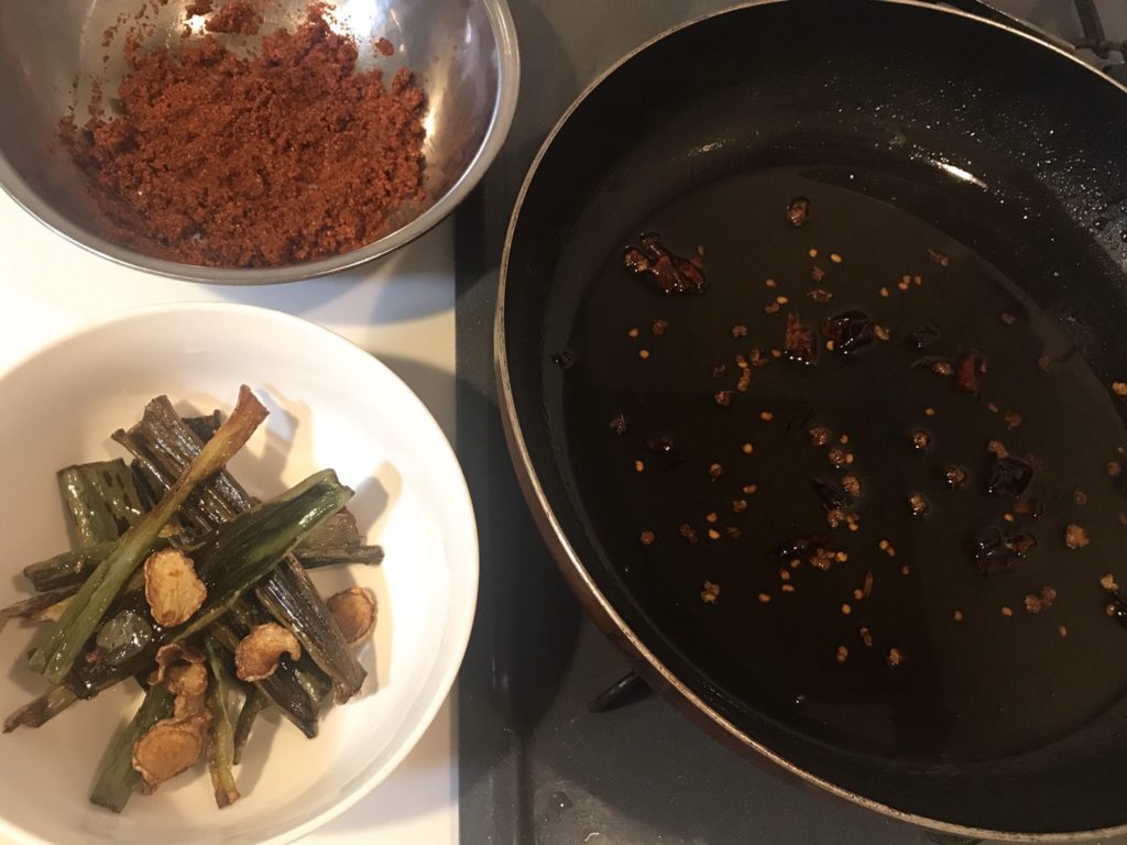 そして関連動画で出てきた「自家製辣油の作り方」も見て、せっかくなので同時に作ることにしました(←マジで辛くしたい)
