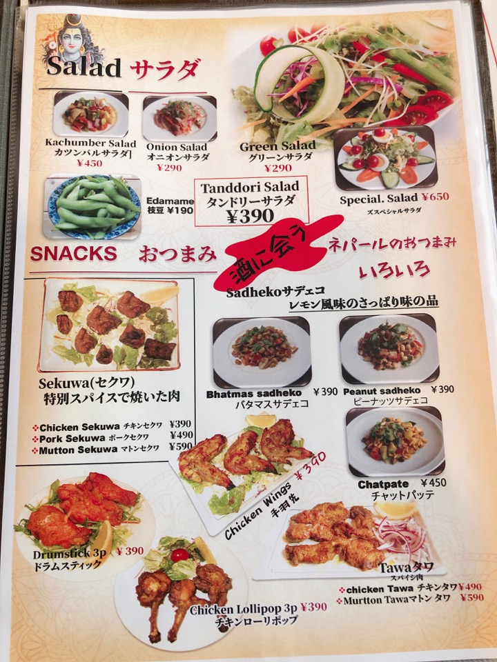 普通カレー屋さんというとカレーのセットメニューが主なラインアップというイメージですが、こちらは単品のネパール料理も豊富なんです。