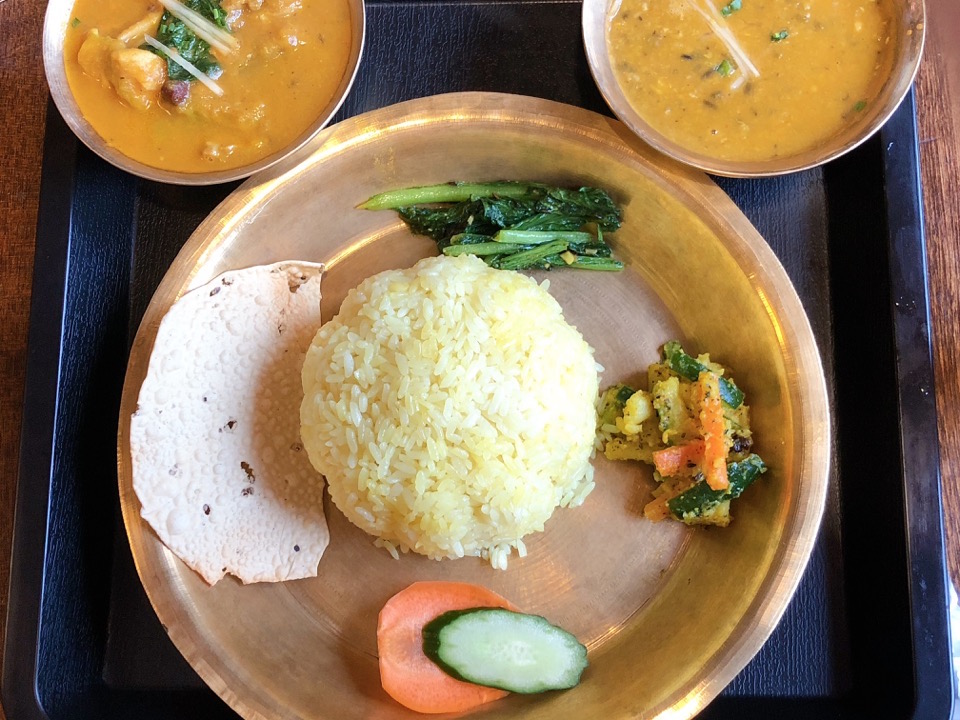 もちろんセットメニューも優秀です。ふわふわナンとカレーのセットもいいですが、ネパール式の定食「ダルバッド」は特におすすめ!